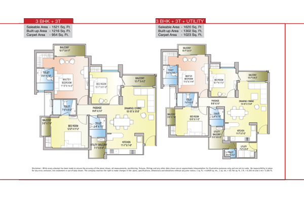| 3BHK+UT | 1620 | On Request |